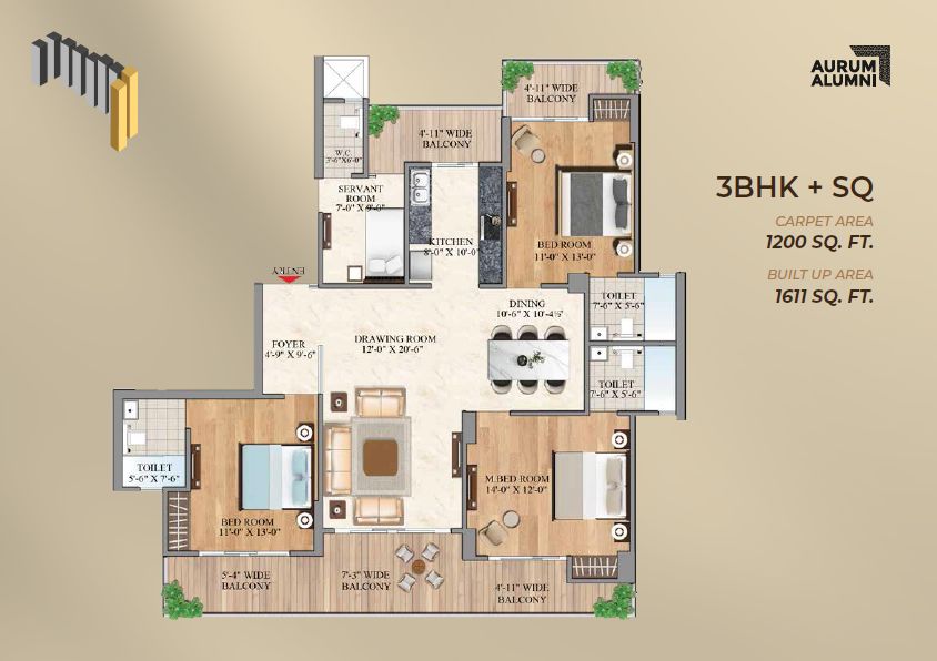 1611 Sq.ft. | 3 BHK