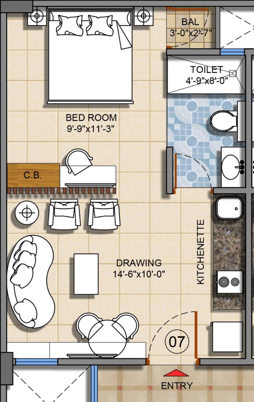 | Type Studio Apartments | Builtup Area 595 Sq.ft. | Price 50.87 Lac | Floor Plan